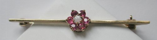 A lovely Giff 9 carat Gold fully hallmarked with embedded Ruby's and a striking Opal.  The brooch also has a locking clasp.