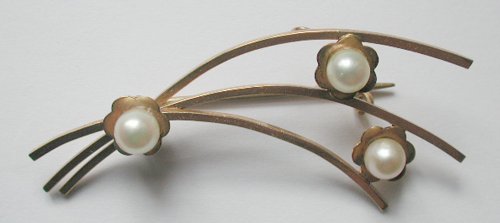 Nice quality, 3 pearl 9 carat gold, Brooch.  Lovely quality and dating from the 1950's.