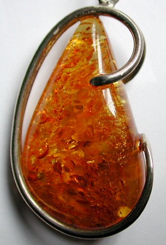 Handmade, silver Amber Pendant on silver Figaro chain.  The amber stone catches the light wonderfully, and is a guaranteed conversation piece.