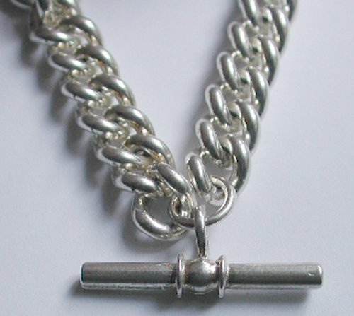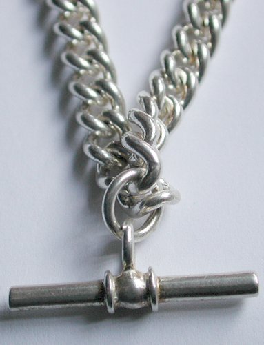 Fully Hallmarked, Sterling Silver, curb link 'Albert' chain, complete with solid sterling silver T-Bar, pendant.