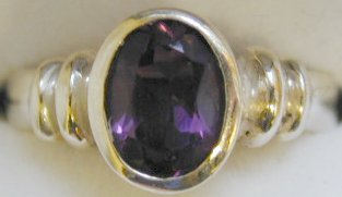 Loveley silver and amethyst set ring.  Size K,P,Q1/2.