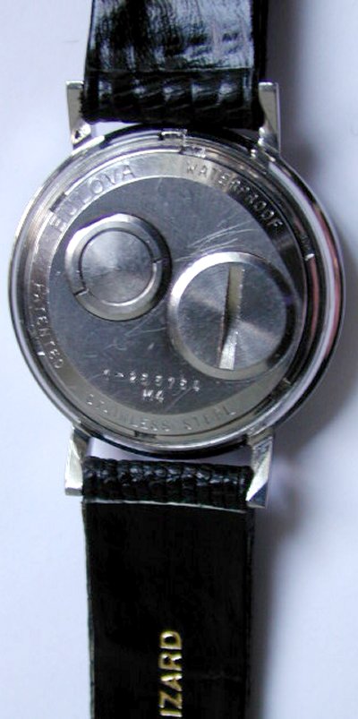 Classic 1964 Bulova Spaceview Tuning Fork wristwatch in stainless steel.  The time is adjusted by a lift up lever on the case back.  The watch is in good condition throughout, and has just been serviced.