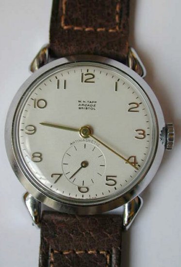 The watch with hand wound movement, and screw back stainless steel case. still even has original price ticket from the 50's on the case back of £5 and 5 Shillings. A lovely classic style.