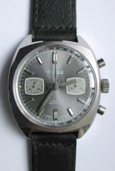 Brand New Ex-Shop stock, 1970's hand wound mechanical 70 jewel Swiss Made Rone, 2 register stainless steel Chronograph. The watch consisting of two-tone silver dial, with two registers one for continuous seconds, and one for 30 minute recording. Silvered baton hour marker, silvered luminous hands, a tachometric scale outer bevel, brushed and polished stainless-steel screw back case. As this watch is brand new ex-shop stock, it still has its original sticker on the case back, and is still on the original Rone strap with original Rone box. Lovely Quality.