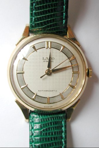 Brand new ex-shop stock, this Laco Gents hand wound mechanical 17 jewel wrist watch is of absolutely marvelous design.